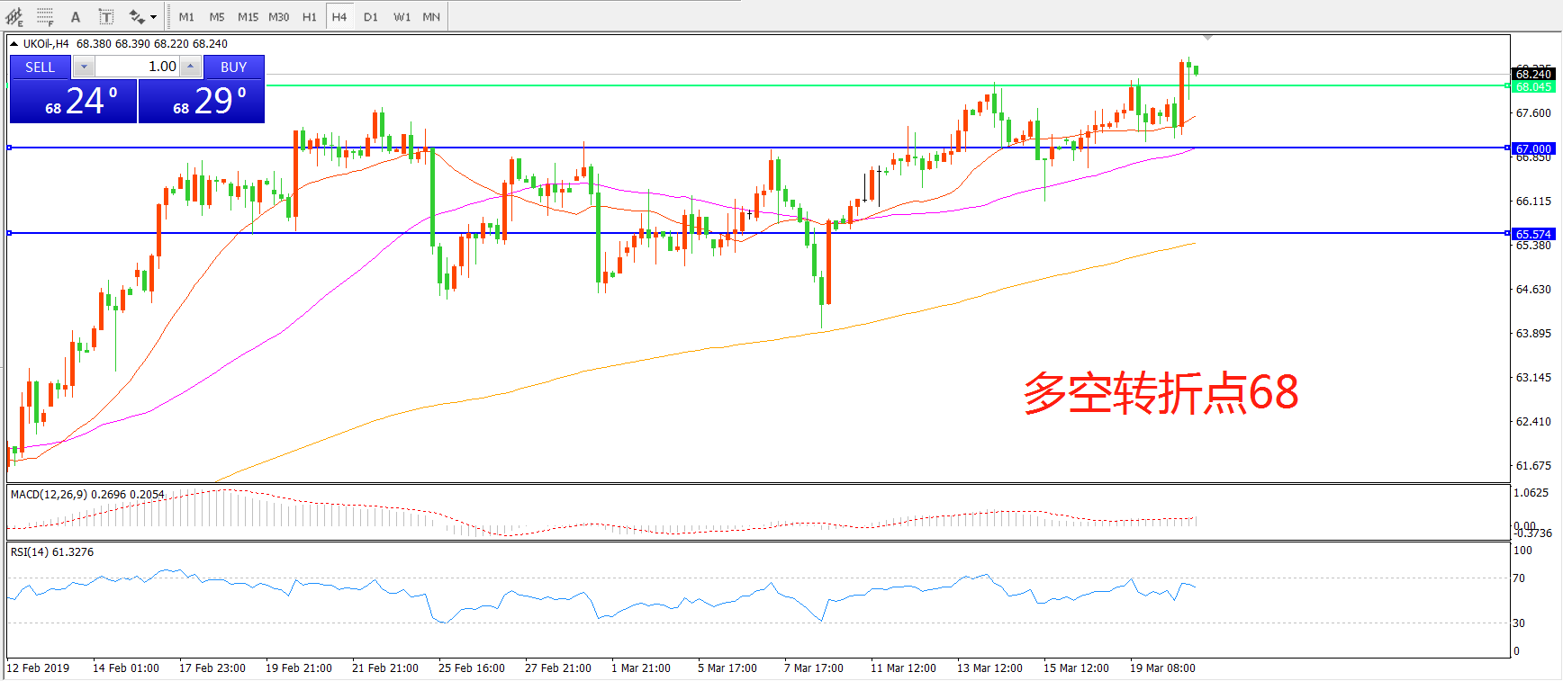 多空转折点:68.00