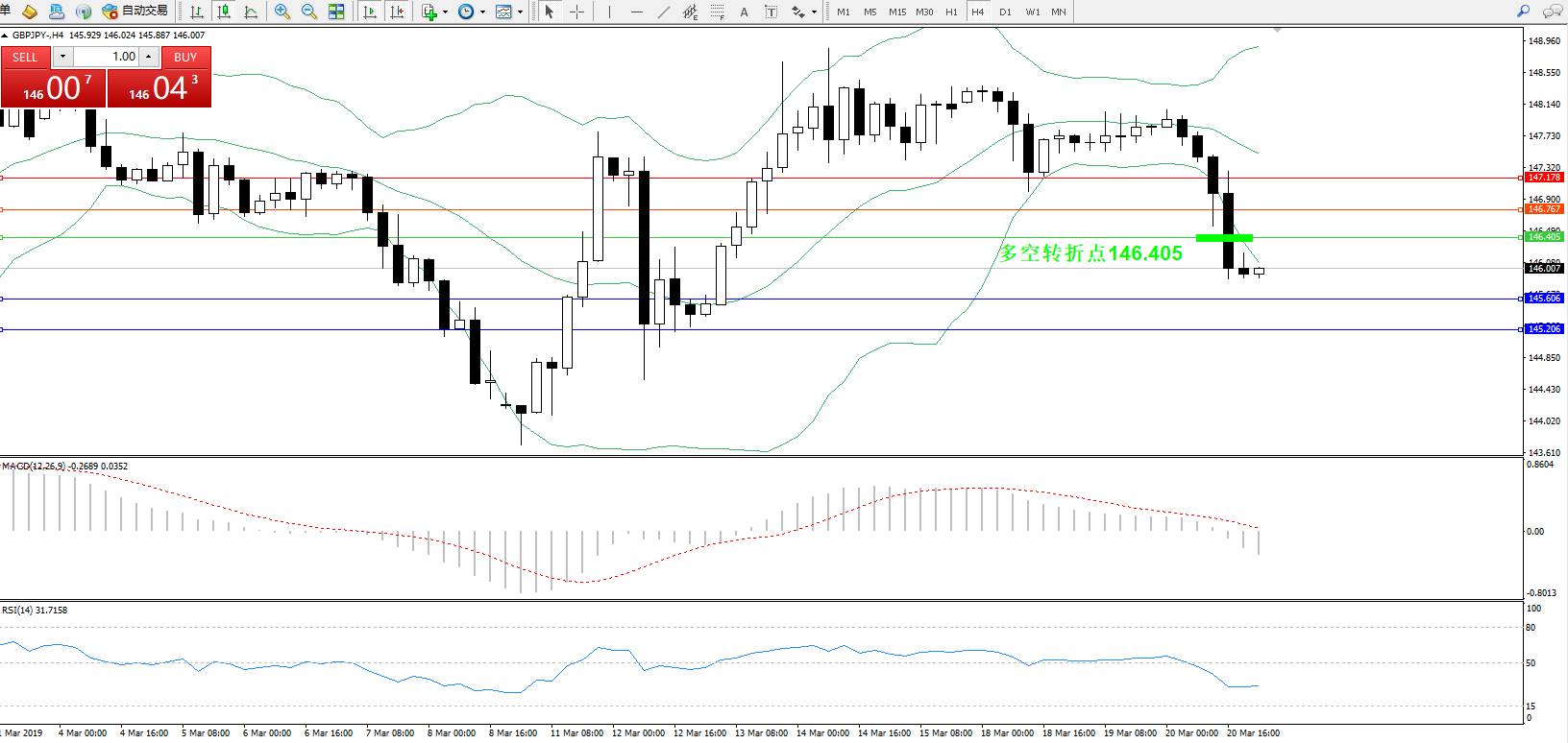 交易策略:146.405下方看跌,目标145.606145.206