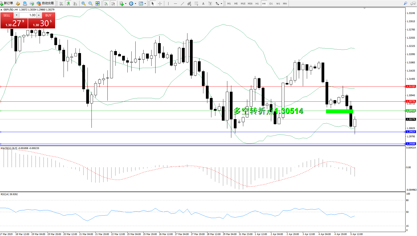 交易策略:1.30514下方看跌,目标1.29924、1.29588