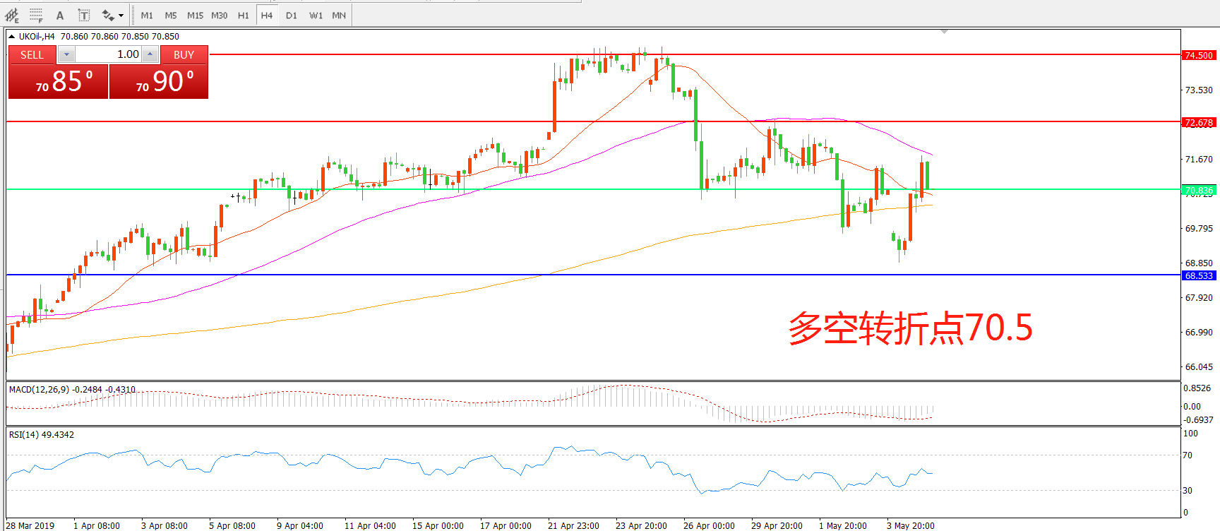 交易策略:在70.50之上看涨,目标72.50    74.50