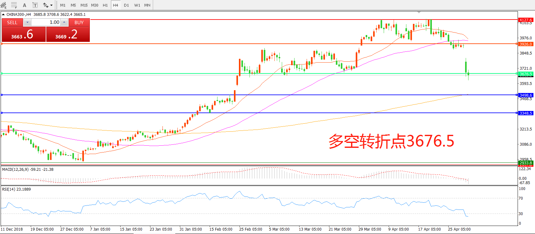 多空转折点:3676.50
