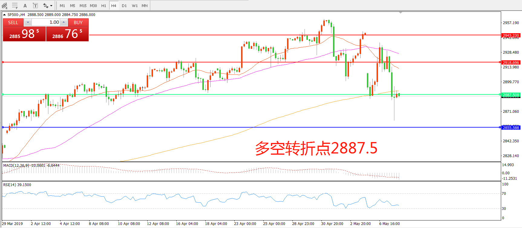 交易策略:在2887.5.之下看跌,目标2855.50     2817.50