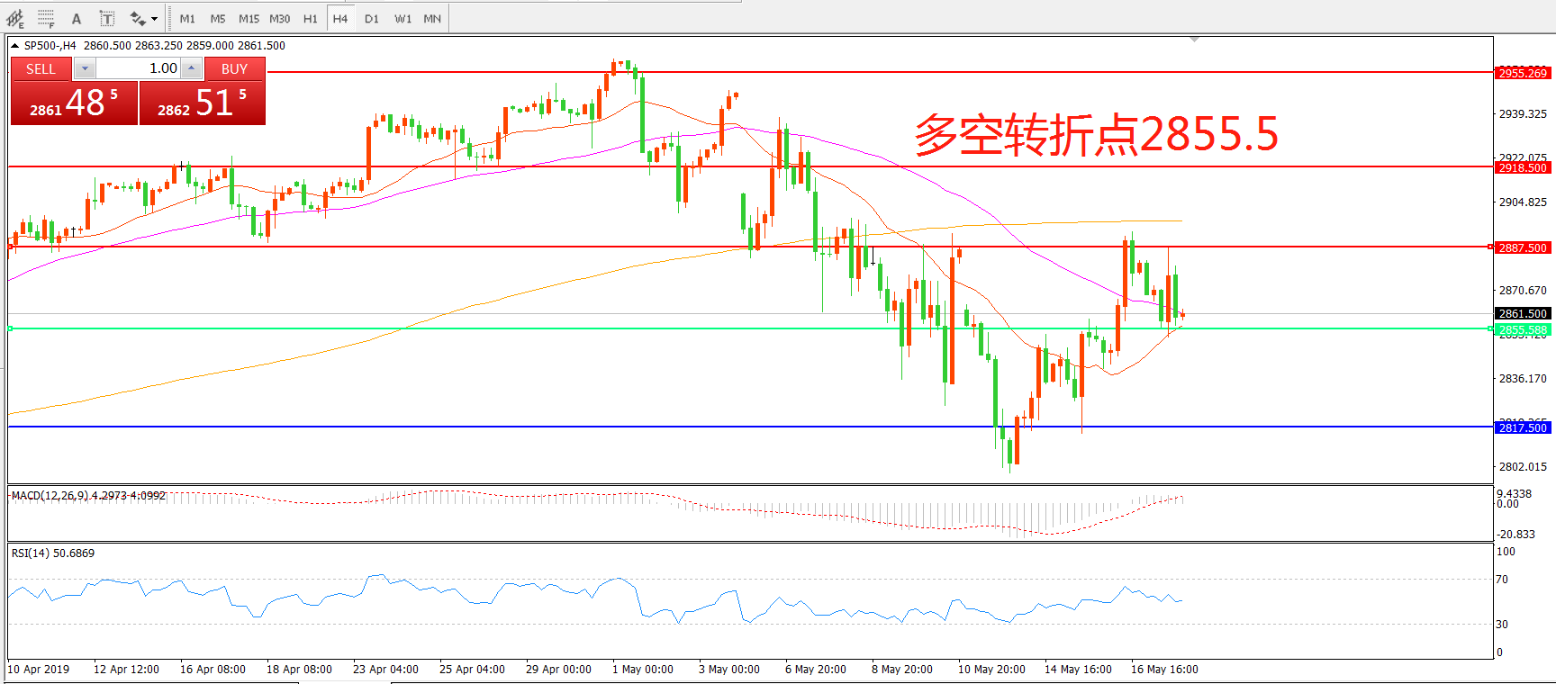 多空转折点:2855.50