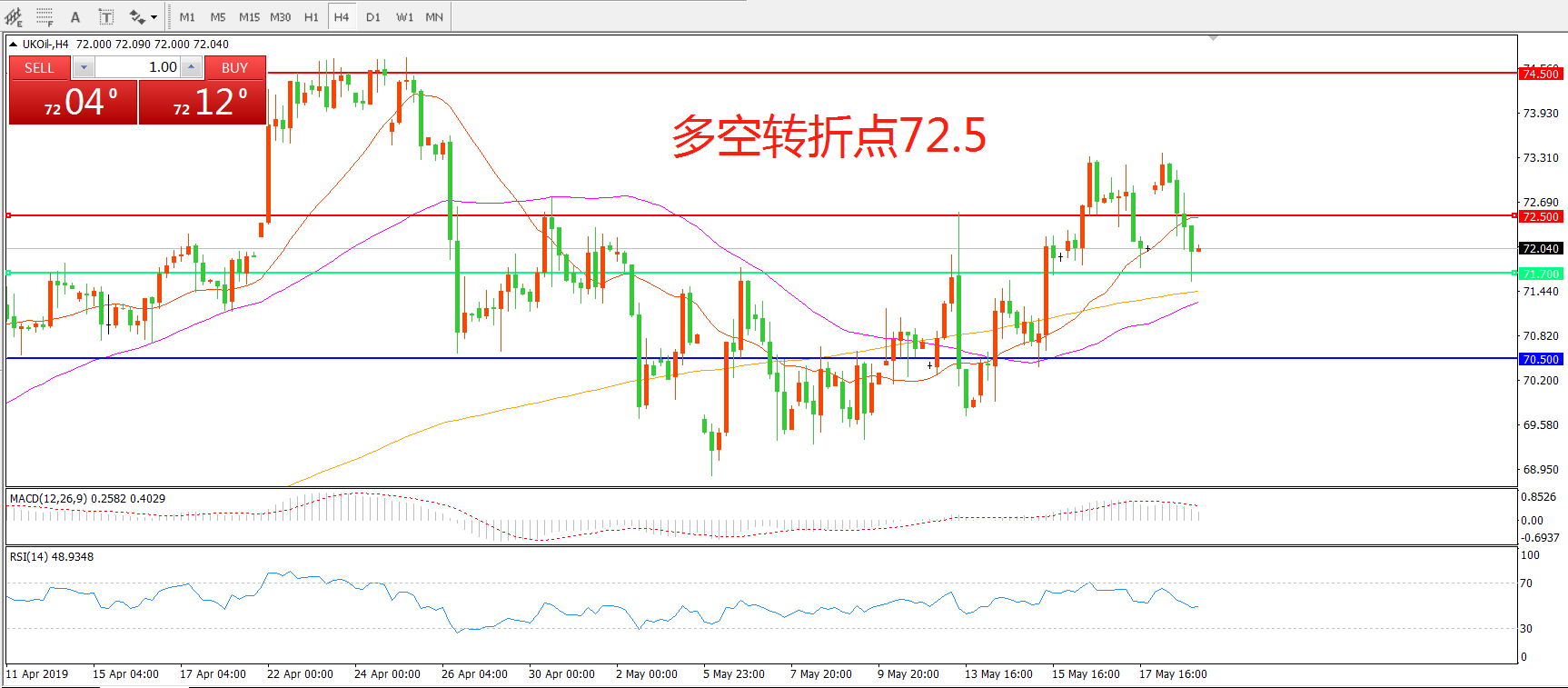 交易策略:在71.70之上看涨,目标72.50    74.50