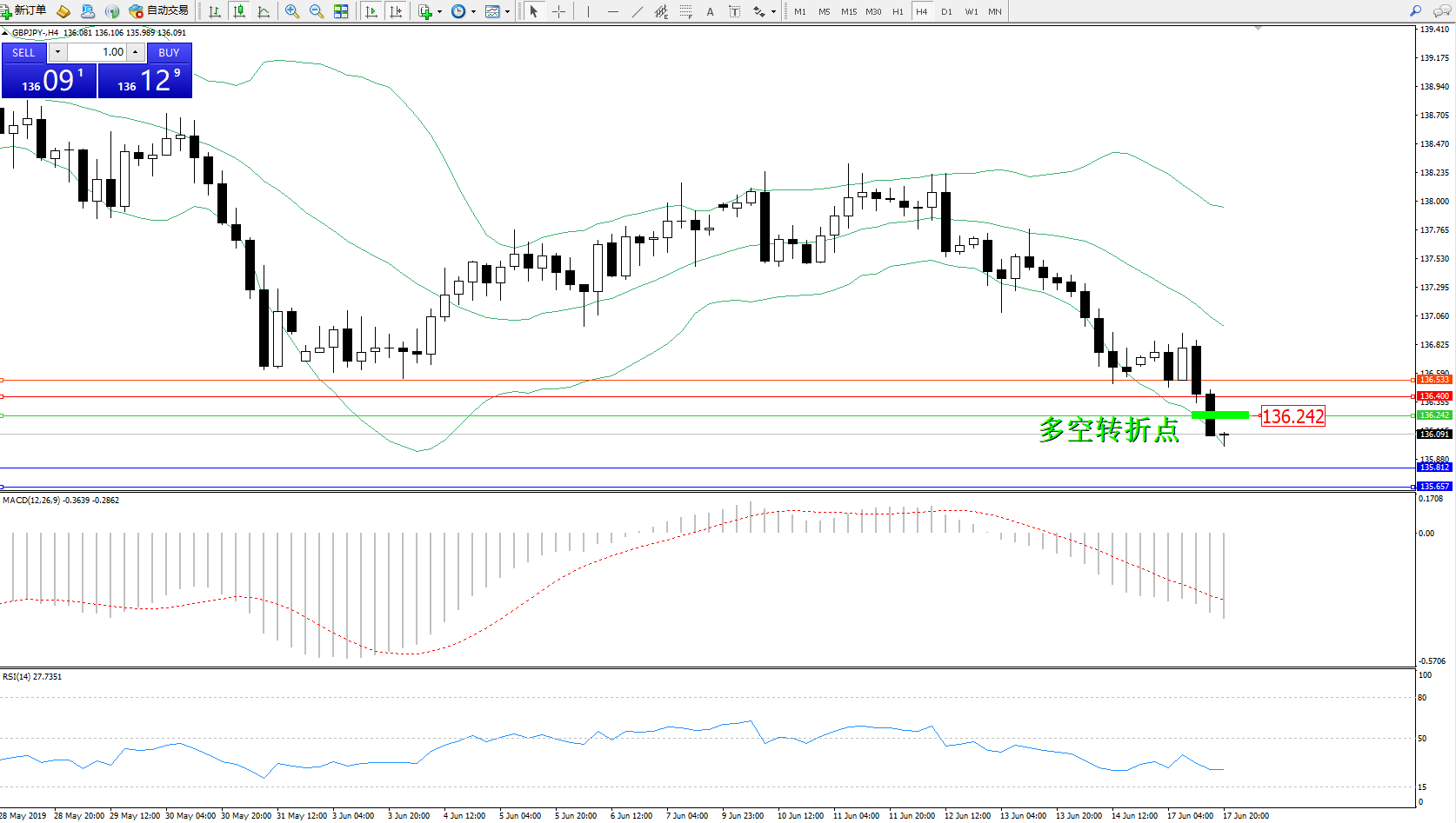 交易策略:136.242下方看跌,目标135.812135.657