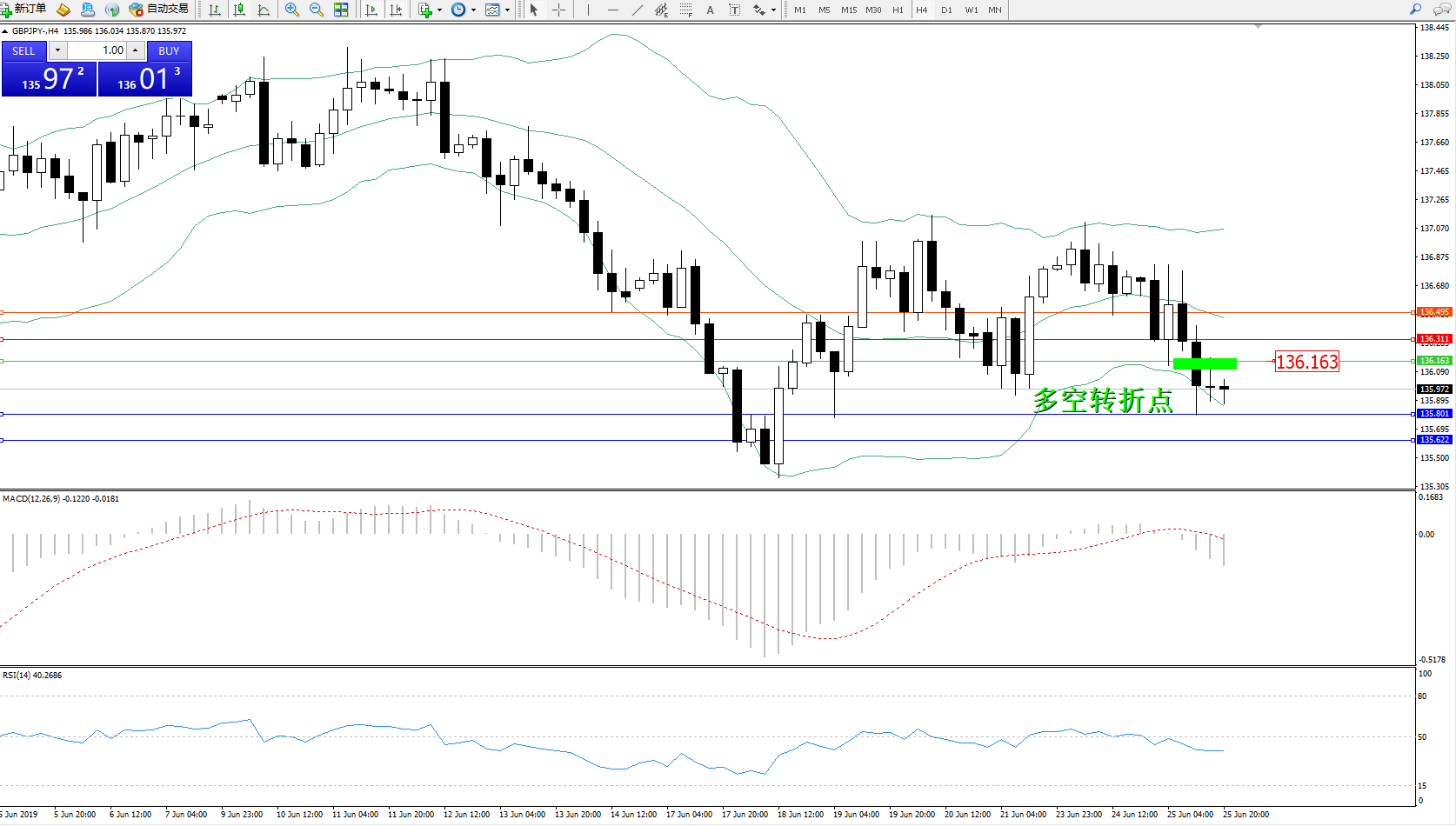 交易策略:136.163下方看跌,目标135.801135.622