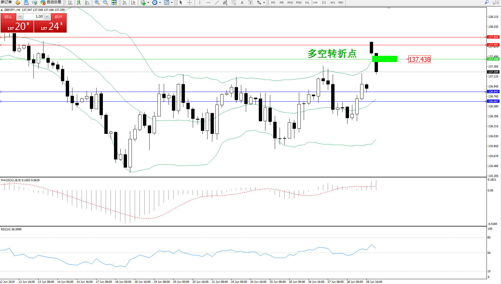 备选策略:137.438上方看涨,目标137.697、137.840