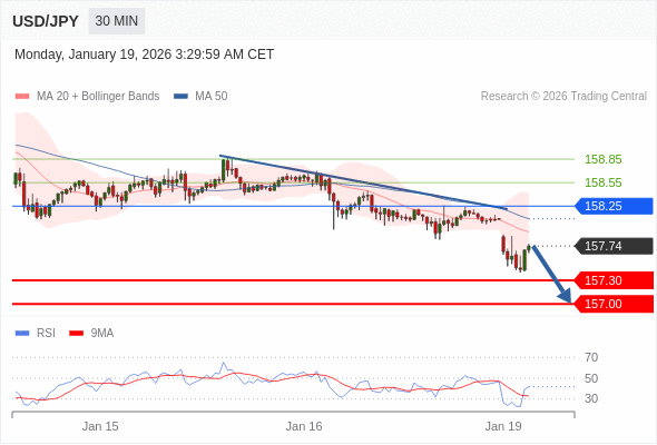 在 158.25 之下,看跌,目标价位为 157.30 ,然后为 157.00 。