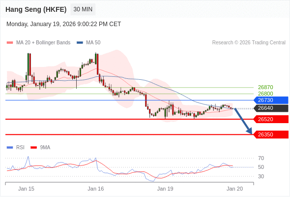 交易策略: 在 26730 之下,看跌,目标价位为 26520 ,然后为 26350 。