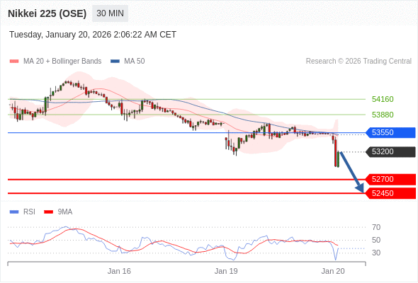 在 53550 之下,看跌,目标价位为 52700 ,然后为 52450 。