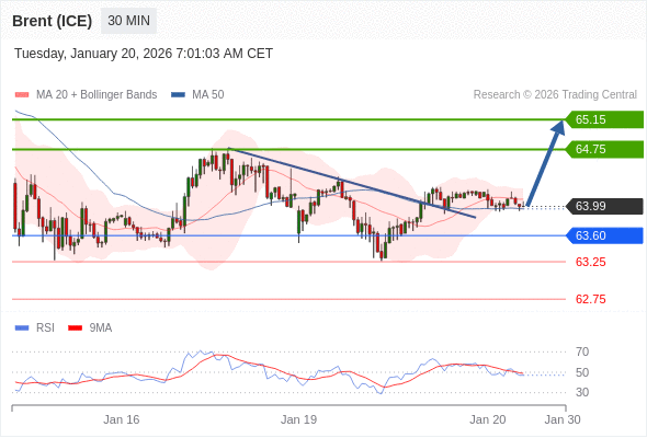 在 63.60 之上,看涨,目标价位为 64.75 ,然后为 65.15 。