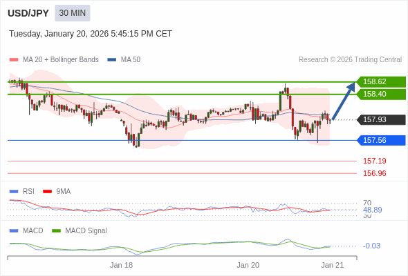 美元/日元 当日内 : 有上涨的可能,目标价位定在 158.62 。