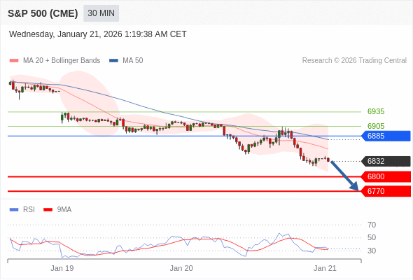 交易策略: 在 6885 之下,看跌,目标价位为 6800 ,然后为 6770 。