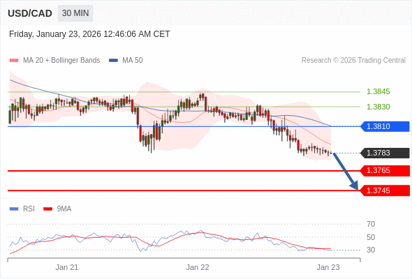 在 1.3810 之下,看跌,目标价位为 1.3765 ,然后为 1.3745 。