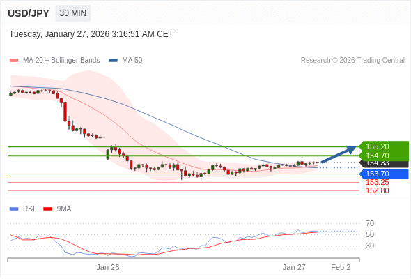 在 153.70 之上,看涨,目标价位为 154.70 ,然后为 155.20 。