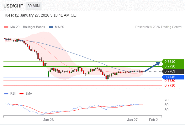 在 0.7745 之上,看涨,目标价位为 0.7790 ,然后为 0.7810 。