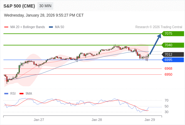 在 6995 之上,看涨,目标价位为 7040 ,然后为 7075 。