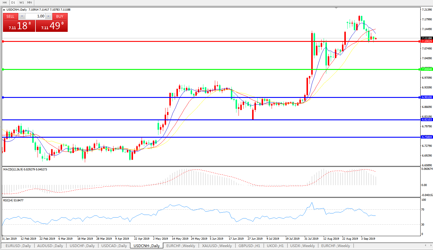技术面简析:日图均线整体呈攻势但短期均线已形成死叉,汇价弱势徘徊于7.10关口附近,MACD运行在0轴上方但动能有持续缩量迹象,RSI下行后有走平迹象,预计短期汇价将继续回落下行,上方重点关注7.20-7.30区间的压制;中美贸易谈判后续进展决定汇价中期走势。