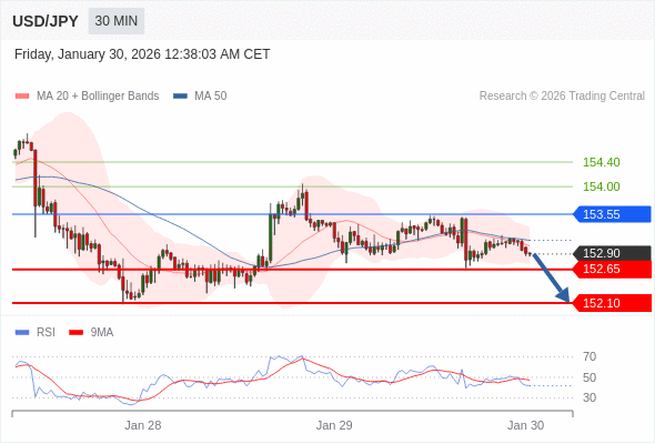 在 153.55 之下,看跌,目标价位为 152.65 ,然后为 152.10 。