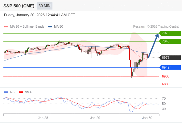 在 6942 之上,看涨,目标价位为 7040 ,然后为 7070 。