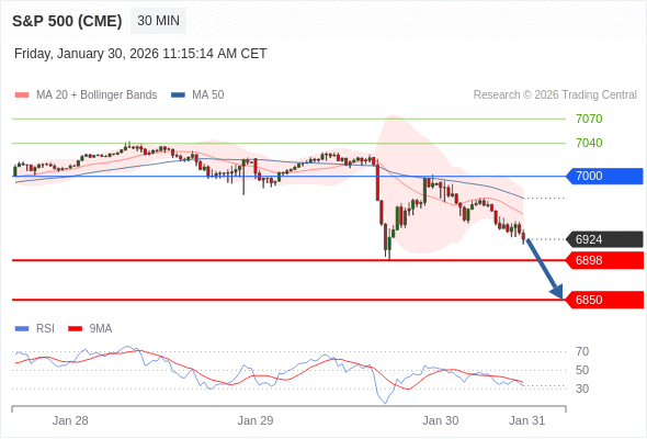 在 7000 之下,看跌,目标价位为 6898 ,然后为 6850 。