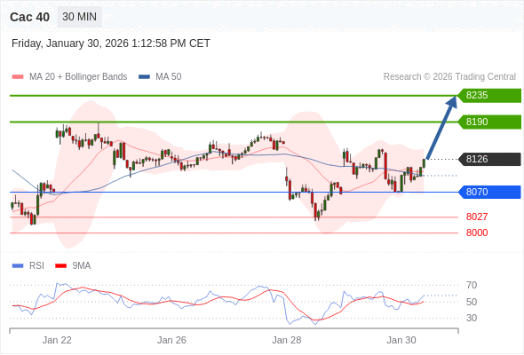 Cac 40 当日内: 持续上升。