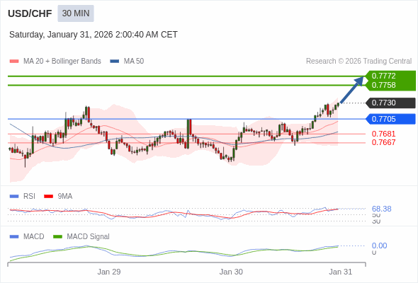 交易策略: 看涨,当 0.7705 为支撑位。