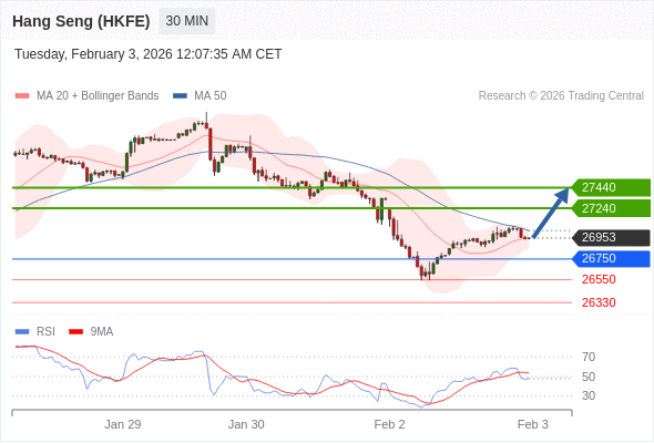 在 26750 之上,看涨,目标价位为 27240 ,然后为 27440 。