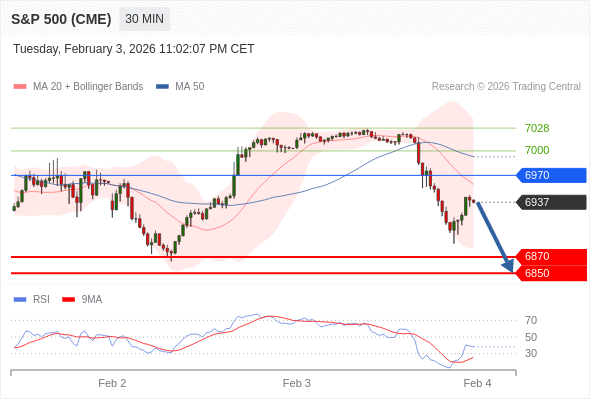 美国标普500指数期货 (H6) 当日内: 目标位为6870。