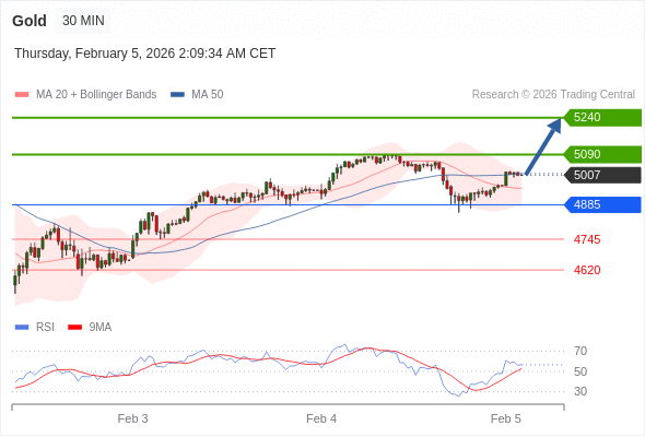 在 4885 之上,看涨,目标价位为 5090 ,然后为 5240 。