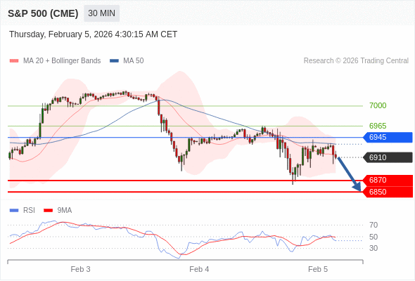 美国标普500指数期货 (H6) 当日内: 目标位为6870。