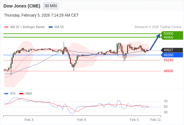 在 49390 之上,看涨,目标价位为 49900 ,然后为 50000 。