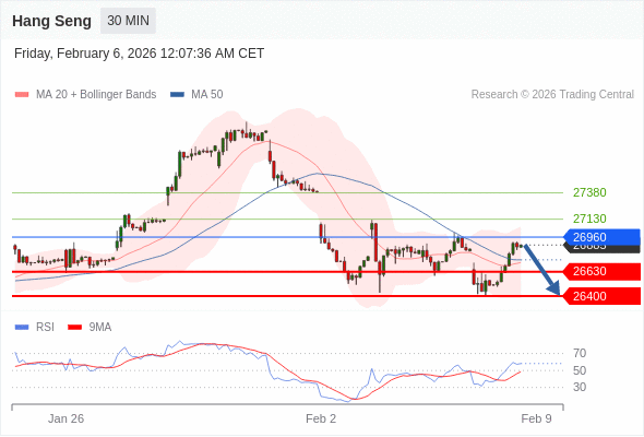 在 26960 之下,看跌,目标价位为 26630 ,然后为 26400 。