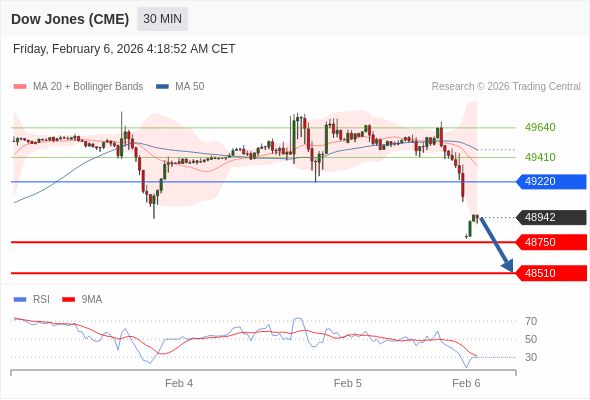 在 49220 之下,看跌,目标价位为 48750 ,然后为 48510 。