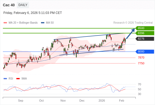 Cac 40 短线: 看涨。