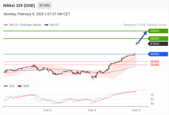 在 56450 之上,看涨,目标价位为 58500 ,然后为 59500 。