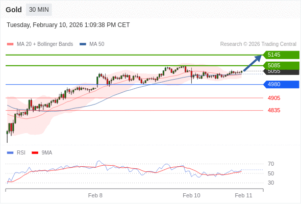 在 4980 之上,看涨,目标价位为 5085 ,然后为 5145 。