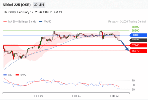 在 58100 之下,看跌,目标价位为 57240 ,然后为 56770 。