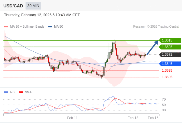 在 1.3545 之上,看涨,目标价位为 1.3595 ,然后为 1.3615 。