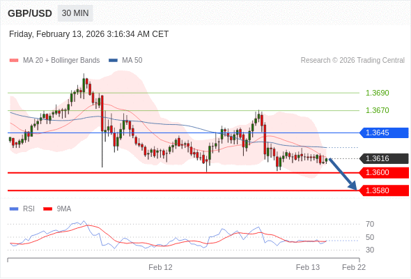 在 1.3645 之下,看跌,目标价位为 1.3600 ,然后为 1.3580 。