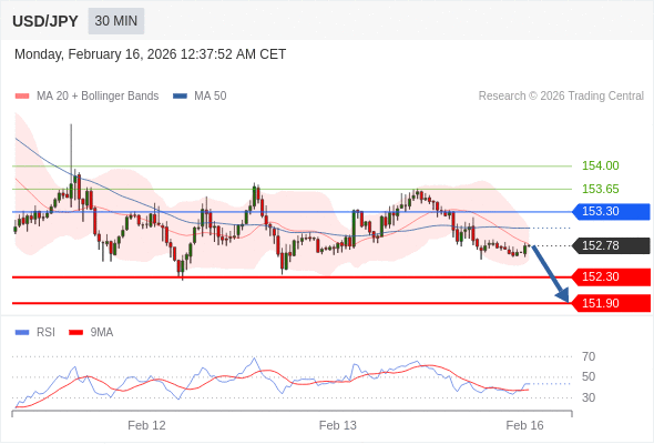 在 153.30 之下,看跌,目标价位为 152.30 ,然后为 151.90 。