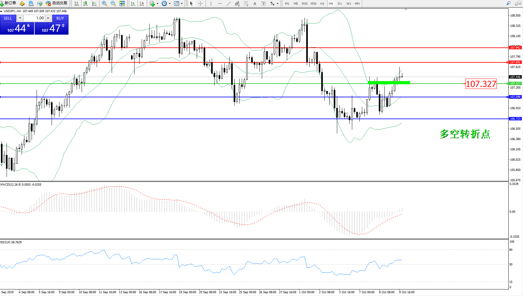交易策略:107.327上方看涨,目标107.691107.942