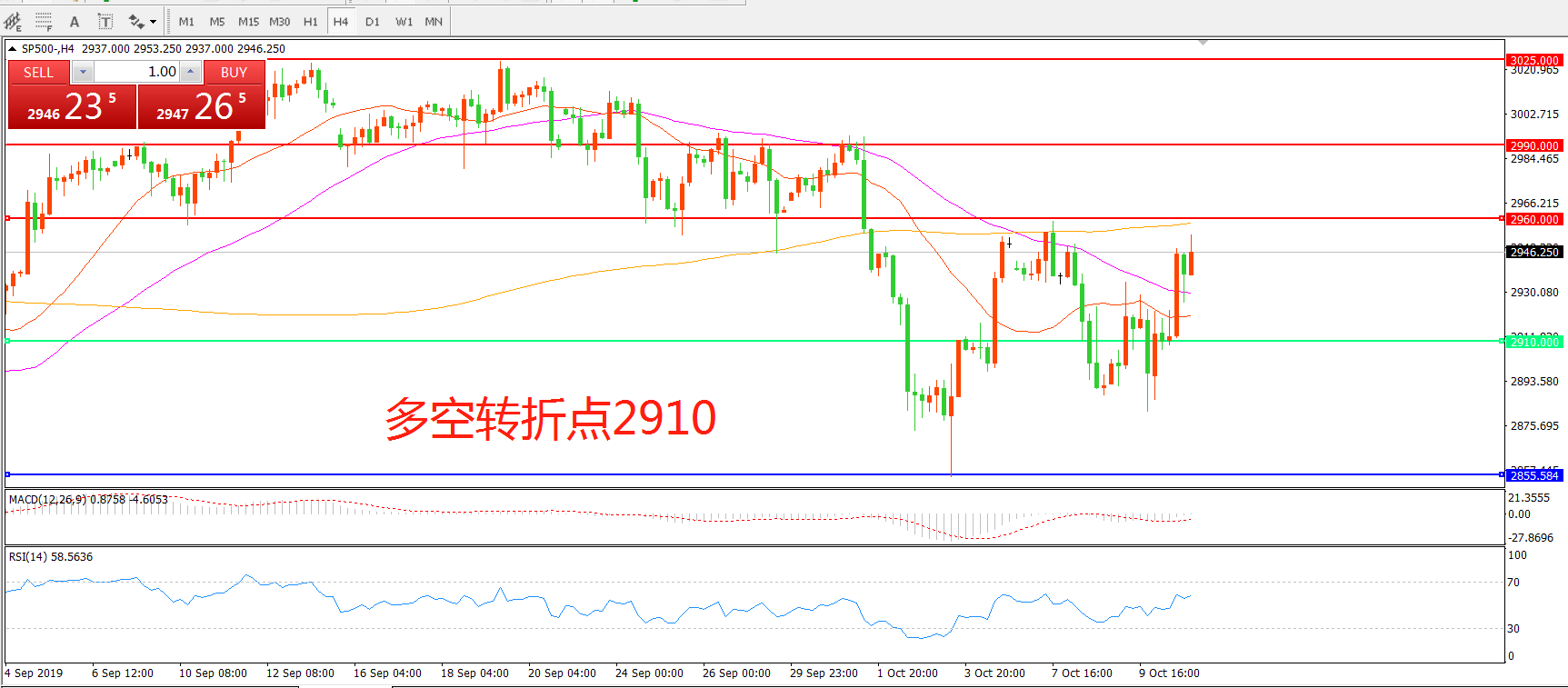 周四(10月10日),美国CPI数据基本符合预期,但市场更为关注的全球贸易局势却传来利好消息,美中贸委会会长艾伦、美国全国商会常务副会长兼国际事务总裁薄迈伦表示,贸易战只有输家,没有赢家,美国工商界不希望看到加征关税。美股受到提振,标普500指数震荡反弹,收报2945.73点。大型科技股多数上涨,苹果涨1.35%,中概股收盘涨跌不一,阿里巴巴涨0.56%,京东涨0.7%,百度涨3.95%。