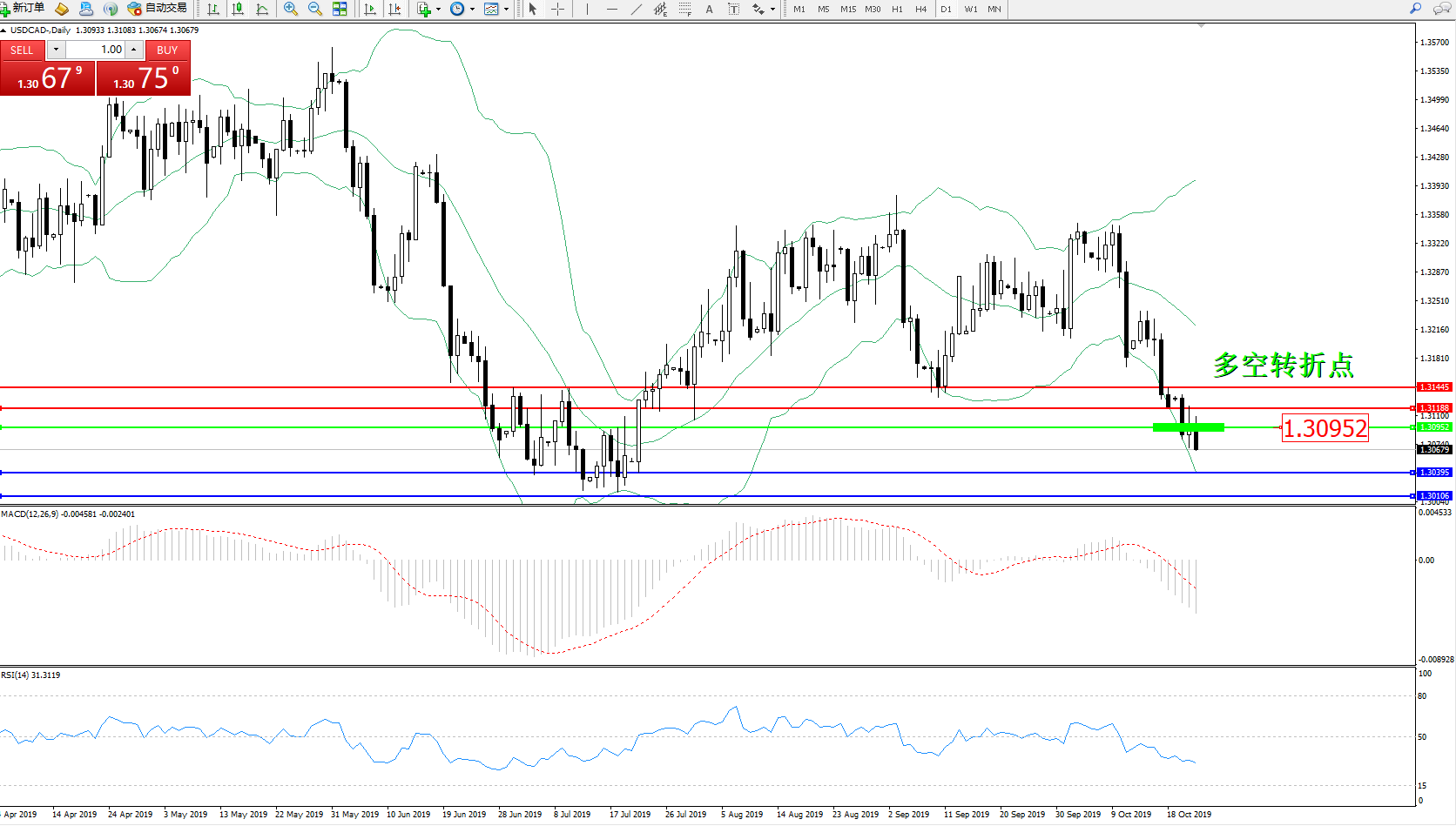 美元加元USDCAD——日K线图显示: