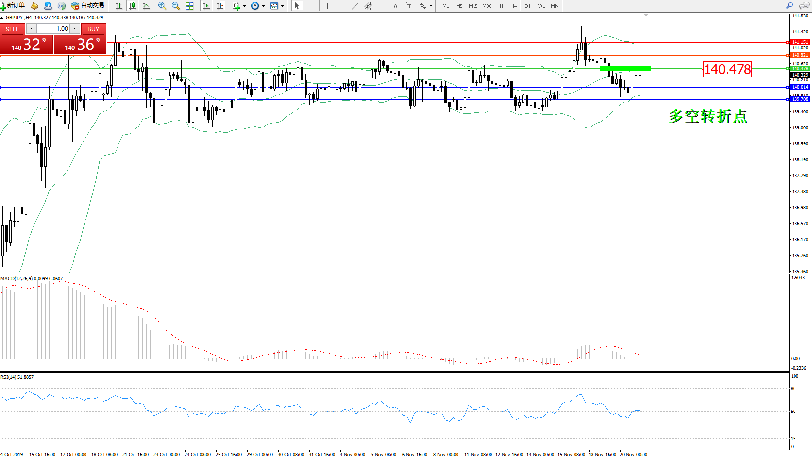 交易策略:140.478下方看跌,目标140.014139.708