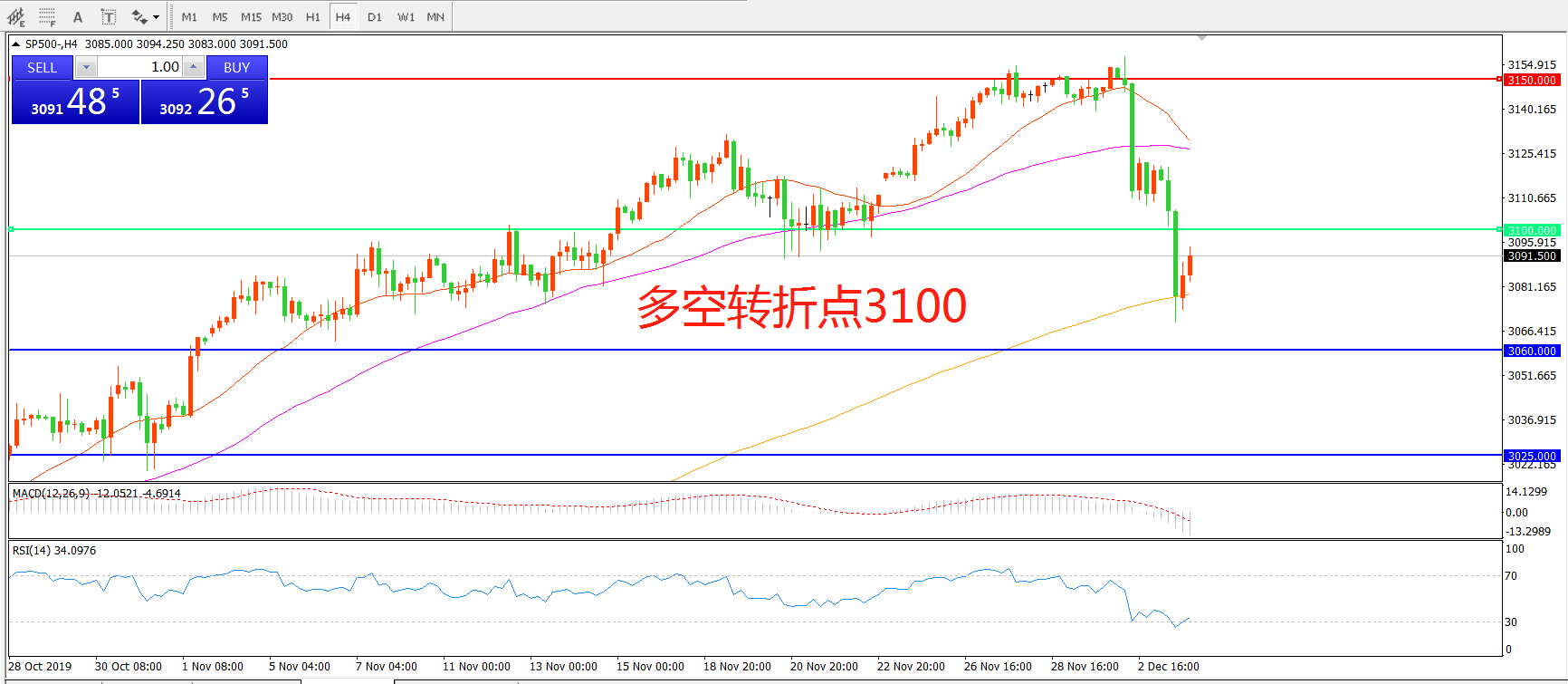 多空转折点:3100.00