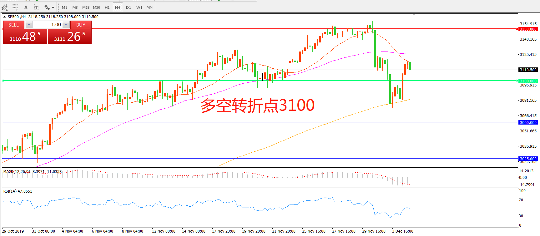 多空转折点:3100.00
