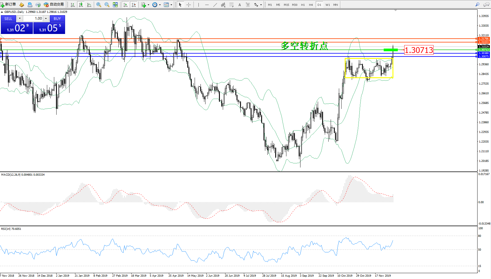 交易策略:1.30713上方看涨,目标1.314331.31766