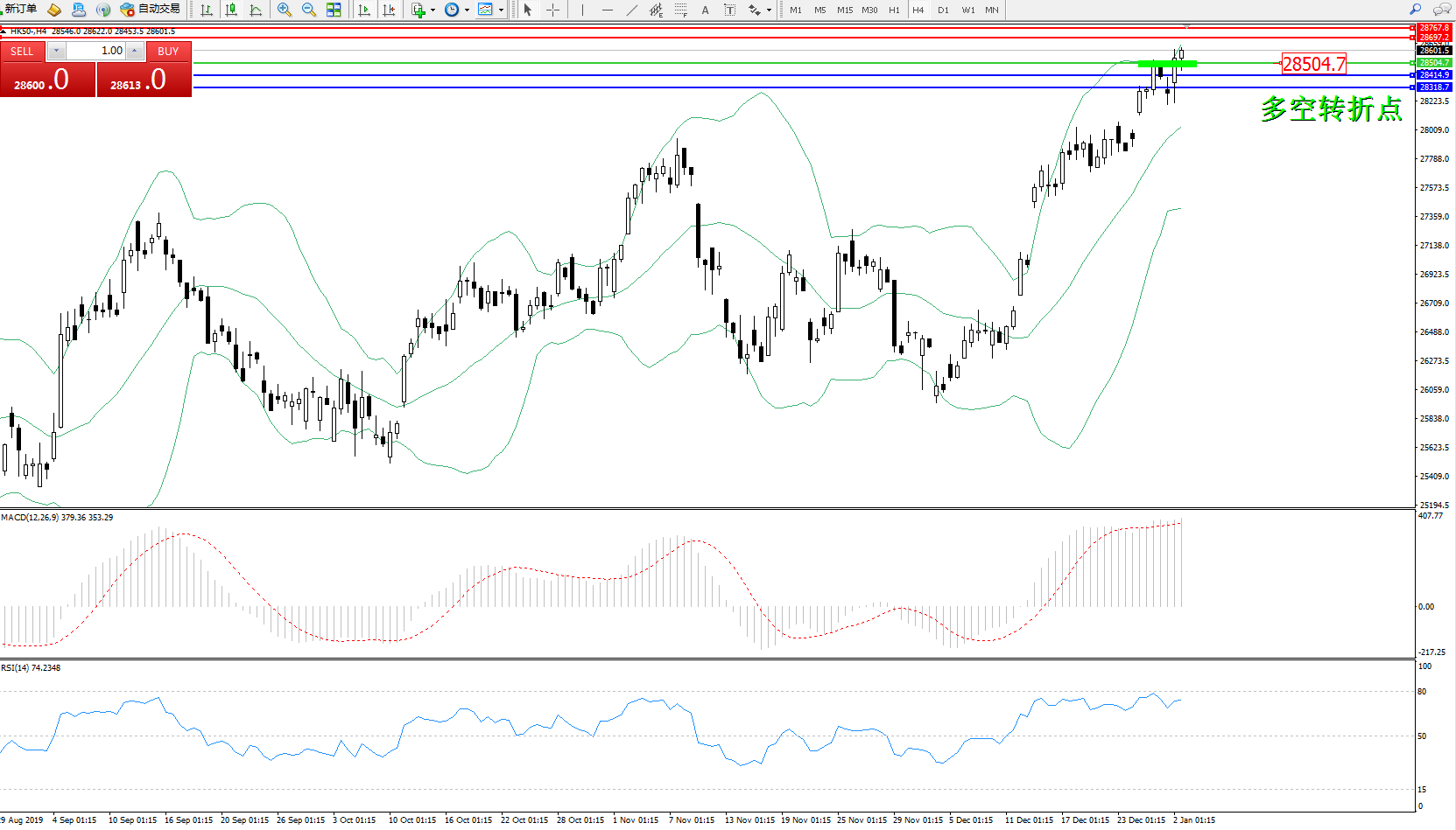 香港恒生指数12日(周四)收盘上涨353.77点,涨幅1.25%,报28543.52点;A股喜迎开门红,沪指涨超1%深成指涨近2%,受惠于内地人民银行降准及中美双方订出签署协议日期,港股在踏入2020年首日,实时高开59点,随即再扩大升幅见28538。短期内港股上行的依然意愿较强。市场继续憧憬国际贸易关系的进一步改善,同时,此前市场担忧的几个事件也未出现“恶化”,因此可能将继续推动股市上行。