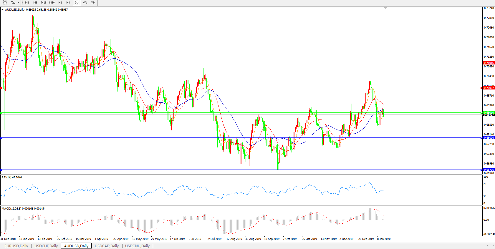 备选策略:0.6900上方看涨,目标0.7000、0.7100
